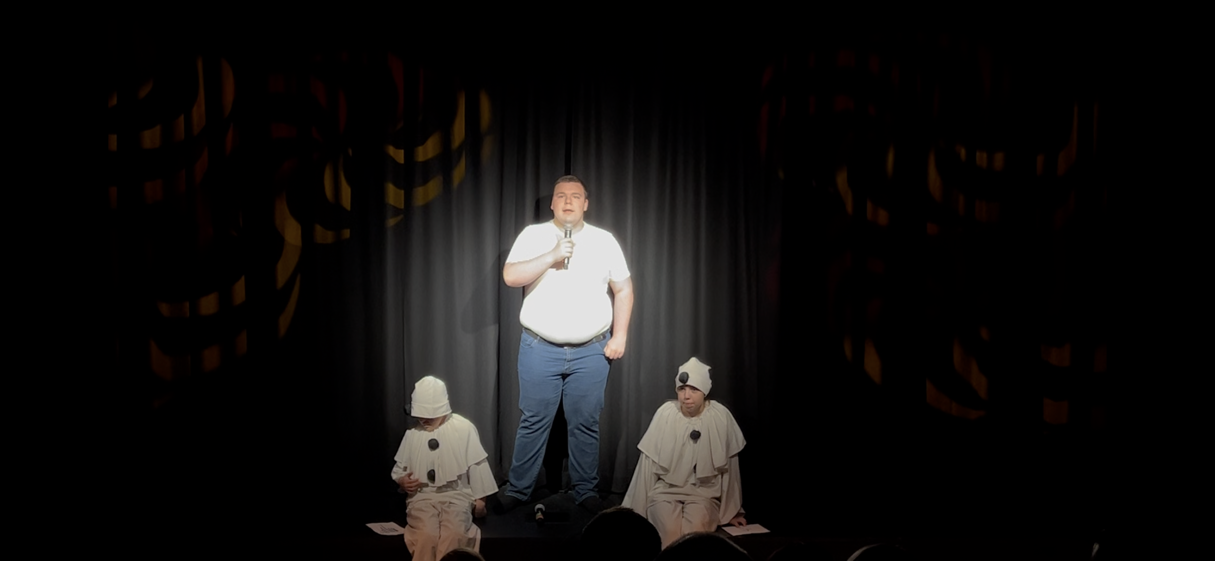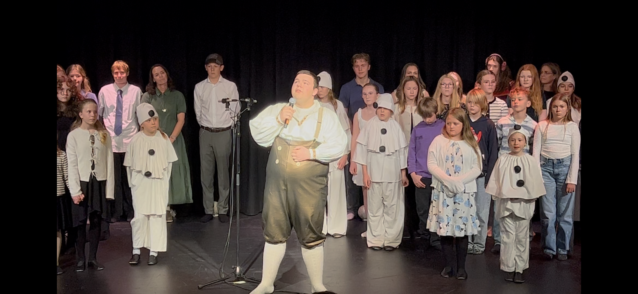 I teatersalen tok Erle Øyjordsbakken over som kveldens konferansier og ledet publikum gjennom et innholdsrikt og stemningsfullt program. Først fremførte Andreas Bjordal “Pierrotsangen”.