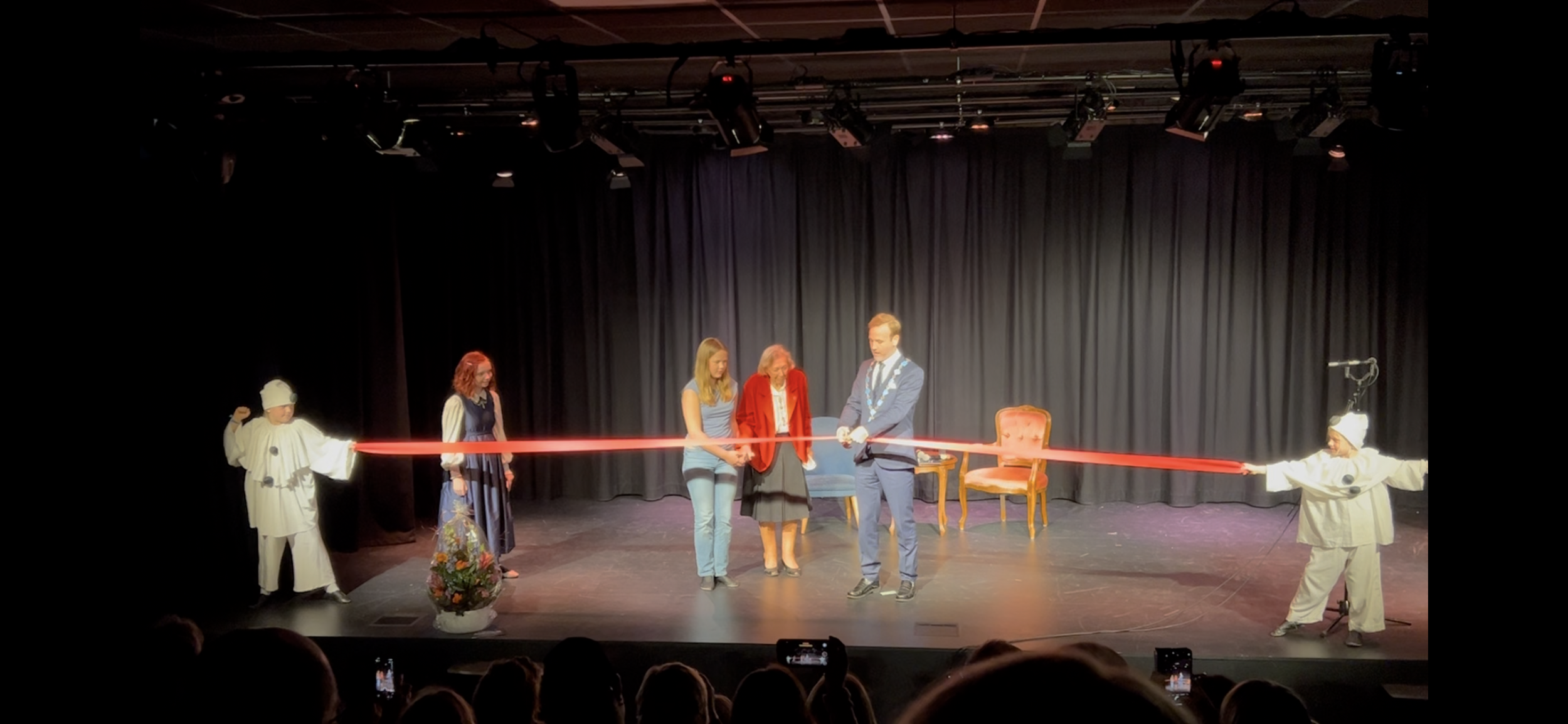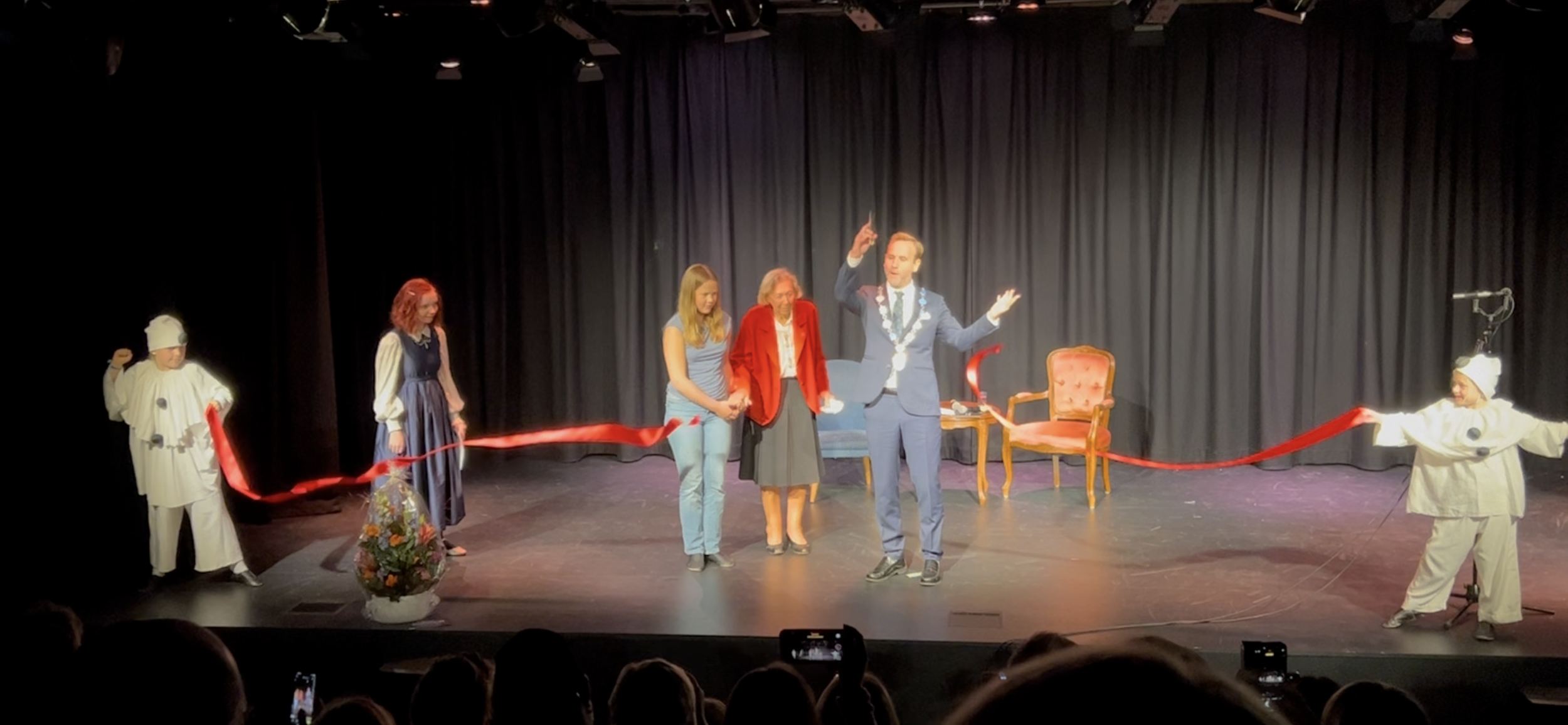 Høytidens høydepunkt kom da ordfører Nils Konrad Bua, sammen med Turid Bakkevik og Amalie Vedøy, klippet snoren og offisielt erklærte Parkteatret for åpnet – til stor applaus fra salen.
