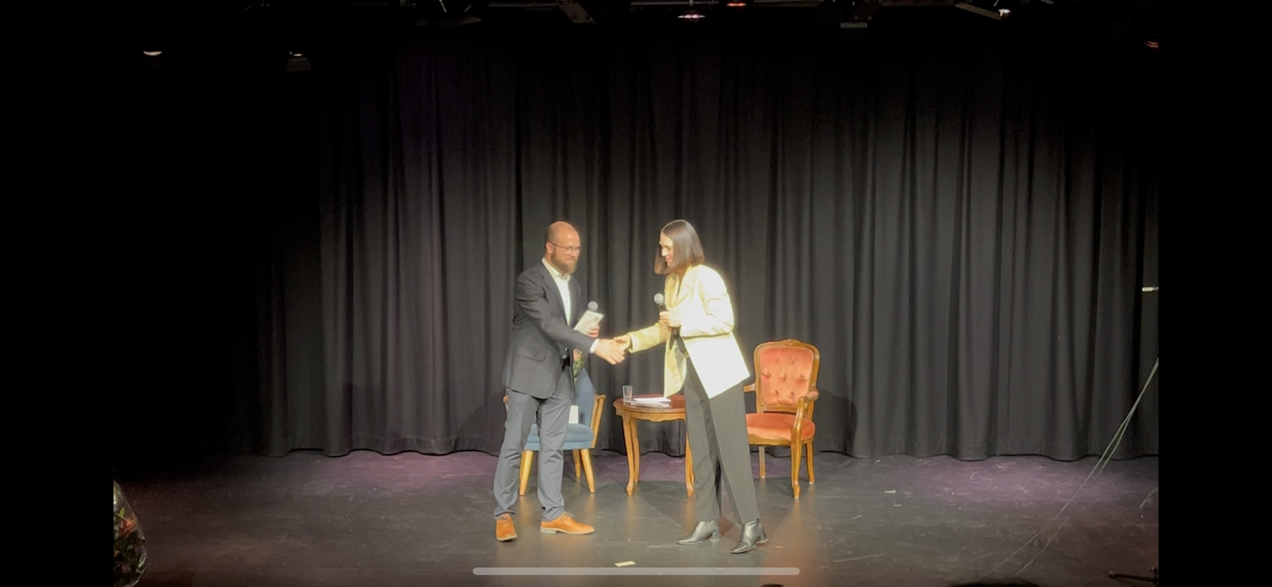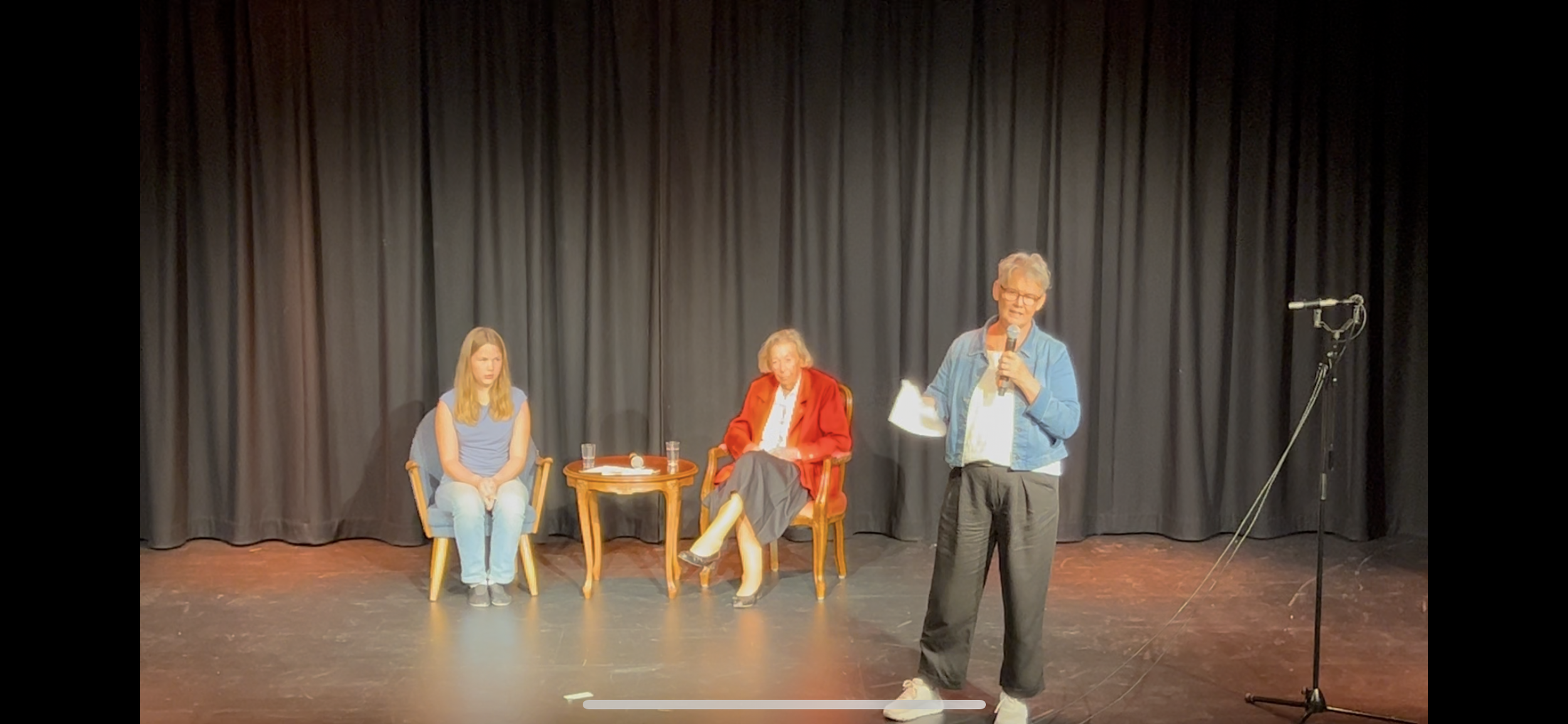 Vi fikk også et tilbakeblikk på teaterets oppstart i 1970, da Turid Bakkevik, en av grunnleggerne, ble intervjuet av sitt oldebarn Amalie Vedøy. Trine Halvorsen, som har hatt mange roller i teaterets historie, delte levende og personlige historier fra sin tid som aktiv.
