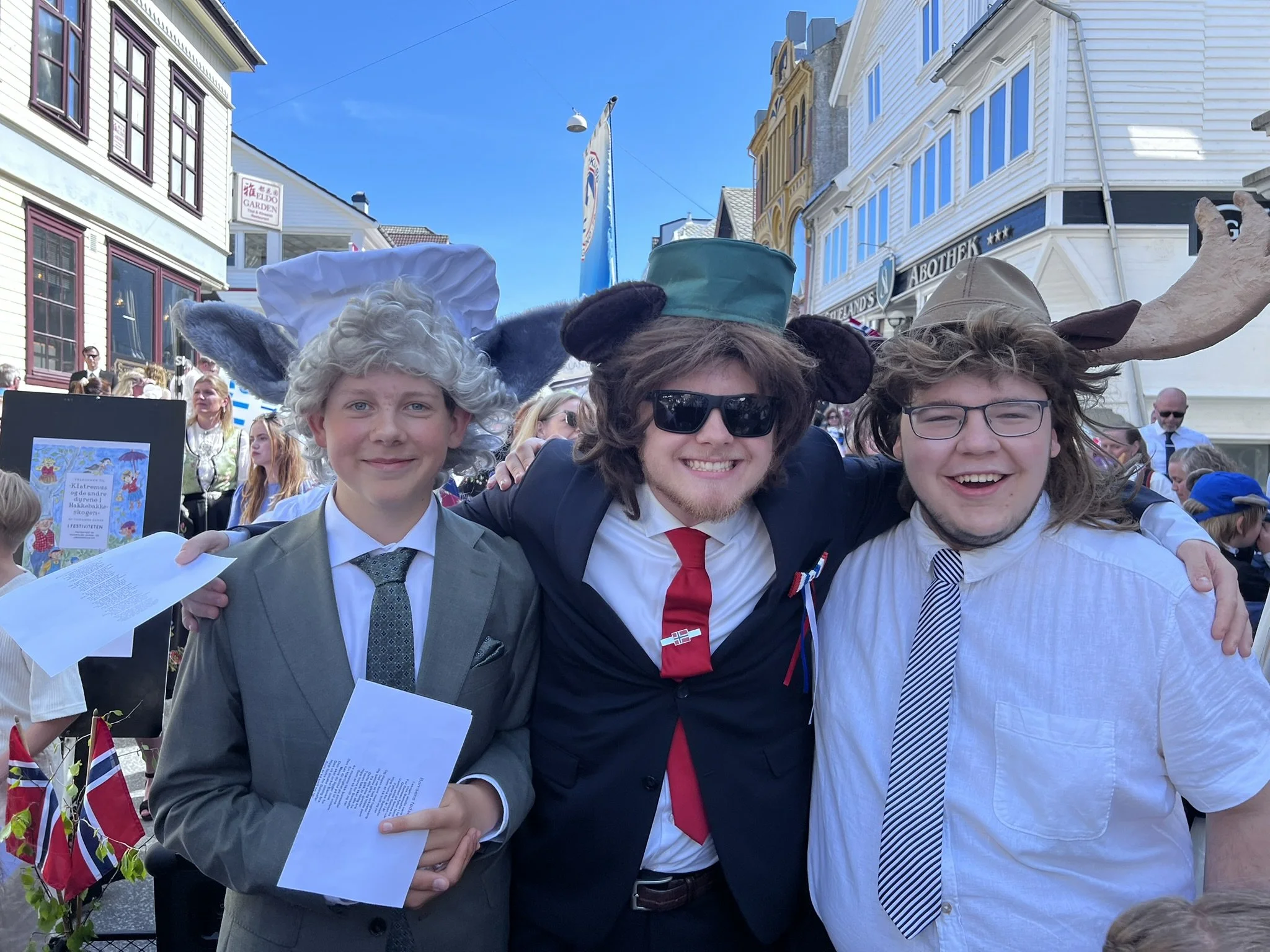 Vi gikk som nr 21 i toget og møttes ved Egon. Temaet for året var selvfølgelig Hakkebakkeskogen. I nydelig solskinn sang vi oss gjennom gatene med grønnsakspisesangen og Bamses fødselsdag samt vår egen teatersang.