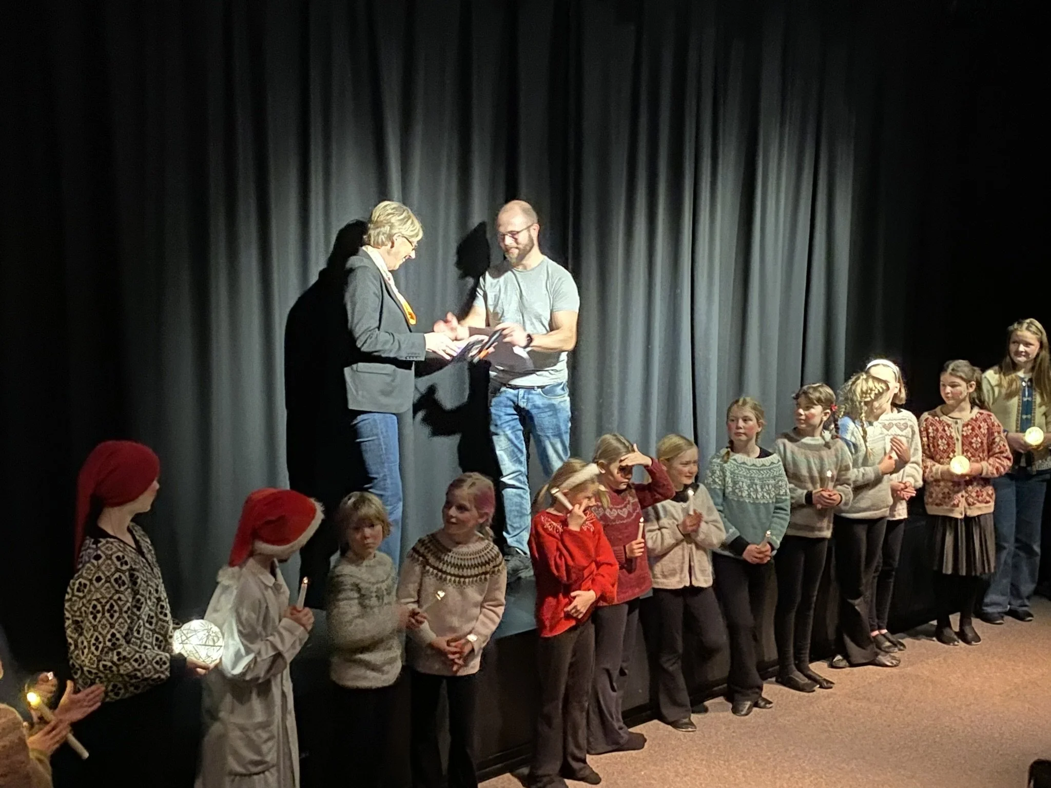 Gaven ble overrakt lørdag 13. desember i forbindelse med vår teaterforestilling Juleforviklinger. Teaterets styreleder, Torbjørn Føyen, tok stolt imot gaven, som ble overrakt av Anne Lise Krossgått Førre.